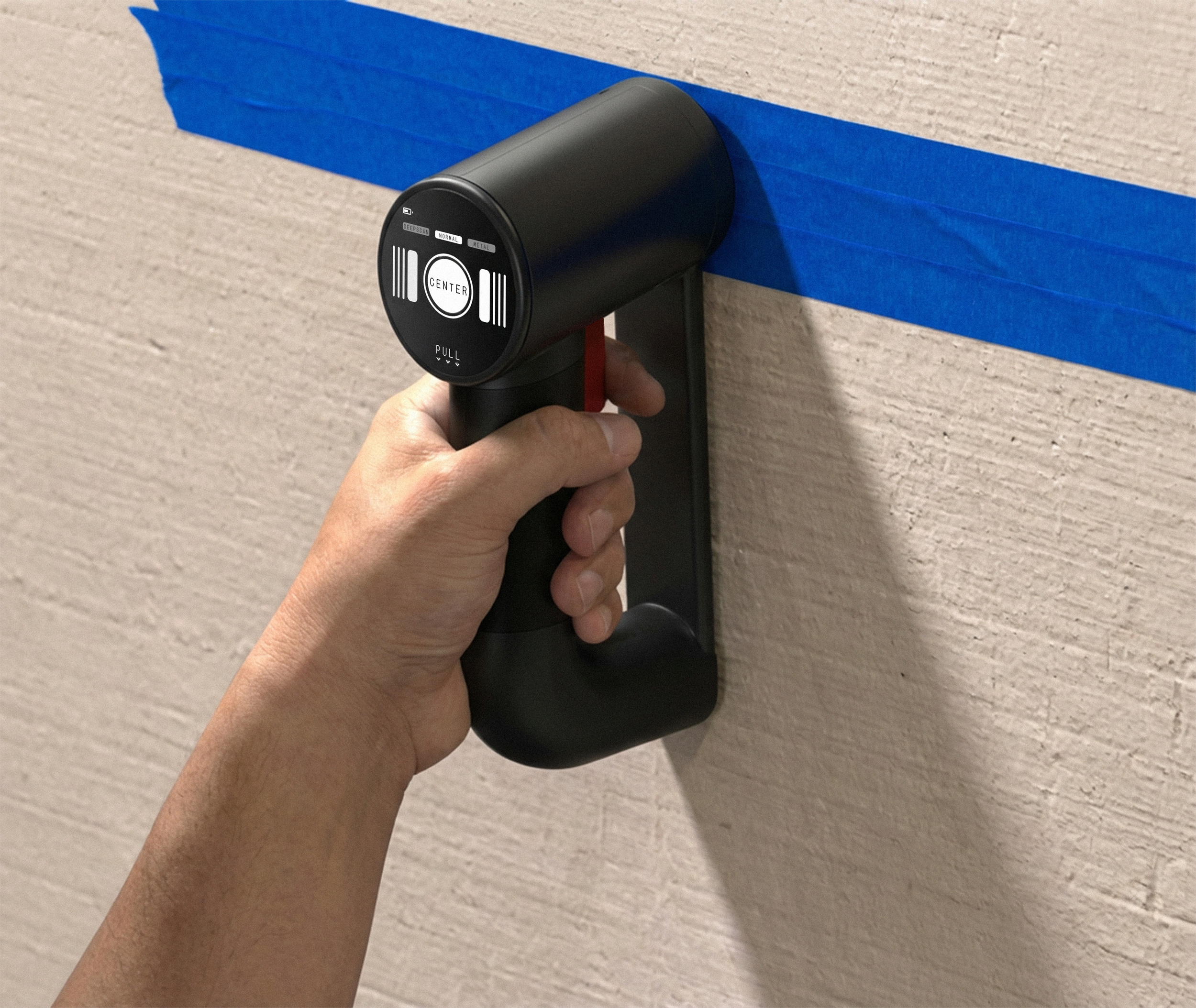 The trigger mechanism pushes out a spring-loaded stainless steel point that’ll mark the wall minimally & efficiently